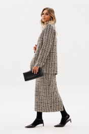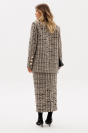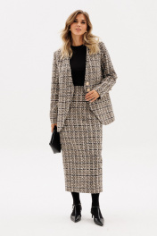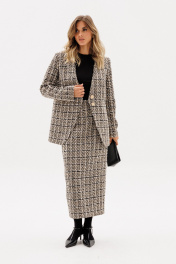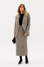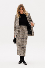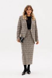 Юбка выполнена из твида. Юбка заужена к низу, длиной миди. Юбка на притачном поясе. Сзади в среднем шве разрез и застежка на потайную молнию и пуговицу. Юбка на отлетной по низу подкладке. Длина юбки: р. 44-48 - 89 см, р. 50-54 - 90 см. 44 46 48 50 52 54 Длина по переду с поясом 89 89 89 90 90 90 Объем по талии 72 76 80 84 88 92 Объем по бедрам 98 102 106 110 114 118 Объем по низу 80 84 88 92 96 100 Ширина пояса 4 4 4 4 4 4