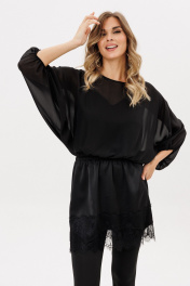Юбка выполнена из плотного атласа. Юбка прямого силуэта длиной выше линии колена. Юбка на поясе с эластичной тесьмой. Низ фигурной формы, декорирован тесьмой-кружевом. Юбка без подкладки. Длина юбки с поясом 41 см. 42 44 46 Длина по переду с поясом 41 41 41 Объем по талии 64/92 68/96 72/100 Объем по бедрам 104 108 112 Объем по низу 106 110 114 Ширина пояса 1,3 1,3 1,3