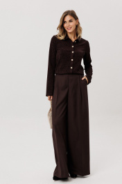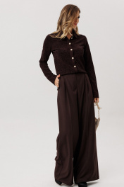Брюки-палаццо выполнены из плательно-костюмной ткани. Брюки на притачном поясе, длиной в пол, расширенные к низу. Спереди складки и боковые карманы с наклонным входом. Застежка спереди на молнию с гульфиком и пуговицу. На задних частях обработаны талиевые вытачки. Пояс в комплект НЕ ВХОДИТ! Длина брюк: р. 44-48 - 111 см, р. 50-54 - 112 см Гарантийный срок не установлен ГОСТ 25294 - 2003