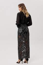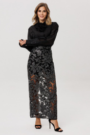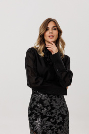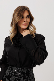 Блузка выполнена из блузочной ткани. Блузка прямого силуэта, длиной ниже линии бедер. Спереди фигурная кокетка и застежка на потайную планку. Спинка цельная. Воротник стояче-отложной. Плечевой шов удлинен. Рукав рубашечного покроя, одношовный. Низ рукава на притачной манжете. Низ блузки фигурной формы. Брошь-цветок в комплект НЕ ВХОДИТ! Длина блузки: р. 44-48 - 79 см, р. 50-54 - 80,5 см. Длина рукава: р. 44-48 - 76 см, р. 50-54 - 77 см. Гарантийный срок не установлен ГОСТ 25294 - 2003