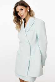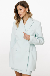 Жакет выполнен из костюмной ткани. Жакет К-образного силуэта, длиной ниже линии бедер. По переду обработаны рельефы от проймы до низа, талиевые вытачки, горизонтальные подрезы, переходящие на спинку, в которых обработаны карманы и лацканы. На спинке обработаны две пары рельефов от проймы до низа и средний шов. Воротник пиджачного типа. Жакет с плечевыми накладками, плечевой шов удлинен. Рукав втачной, двухшовный. По низу рукав обработан шлицей, застёгивающеюся на 4 петли и пуговицы. Жакет двубортный, на притачной по низу подкладке. _x000D_ Длина жакета - 77 см._x000D_ Длина рукава - 61 см._x000D_ Гарантийный срок не установлен_x000D_ ГОСТ 25295 - 2003_x000D_