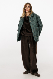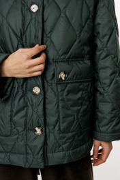 Куртка выполнена из плащевой ткани, простеганной с Isosoft. Куртка прямого силуэта, длиной до линии бедер. Застежка центральная бортовая на пришивные пуговицы. Спереди накладные карманы с клапанами. Спинка цельная. Воротник стояче-отложной. Рукав втачной, двухшовный. Плечевой шов спущен. Пройма углублена. Спинка длиннее переда. В боковых швах фигурные разрезы. Куртка на притачной по низу подкладке. Температурный режим от +5*С до -5*С. Длина куртки по спинке - 77 см. Длина рукава от горловины - 74 см. Гарантийный срок не установлен ГОСТ 25295 - 2003