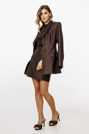 Жакет выполнен из костюмной ткани. Жакет Х-образного силуэта, длиной ниже линии бедер. Спереди рельефы от проймы до низа, прорезные карманы с клапанами и центральная бортовая застежка на пуговицы. Воротник пиджачного типа. На спинке средний шов. Плечевой шов удлинен. Жакет с плечевыми накладками. Рукав втачной, двухшовный, по низу заднего шва шлица с застежкой на пуговицы. Жакет на притачной по низу подкладке. Длина жакета: р. 42-46 - 76 см, р.48-52 - 77,5 см. Длина рукава: р. 42-46 - 64 см, р.48-52 - 65 см. ЖАКЕТ м. 3039 42 44 46 48 50 52 Длина по центру спинки 76 76 76 77,5 77,5 77,5 Длина рукава 64 64 64 65 65 65 Объем по груди 92 96 100 Объем по талии 71 75 79 Объем по низу 120 124 128 Объем рукава вверху 34 36 38 Объем рукава внизу 27 27 27