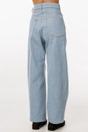 Джинсы-багги выполнены из плотного джинса. Брюки на притачном поясе, длиной до линии щиколотки, расширенные от бедер и слегка зауженные к низу. Спереди боковые карманы с фигурным входом. Застежка на пуговицу и молнию с гульфиком. На задних частях кокетки и накладные карманы. На передней и задней части коленные вытачки. Длина брюк: р.44-48 - 102 см, р. 50-54 - 103,5 см БРЮКИ м. 3043 44 46 48 50 52 54 Длина сбоку с поясом 102 102 102 103,5 103,5 103,5 Объем по талии 75 79 83 87 91 95 Объем по бедрам 106 110 114 118 122 126 Ширина пояса 4 4 4 4 4 4