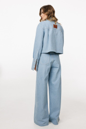 Джинсы-клеш выполнены из плотного джинса. Брюки на притачном поясе, длиной до пола, расширенные к низу. Спереди верхние отлетные части, боковые карманы с фигурным входом. Застежка на пуговицу и молнию с гульфиком. На задних частях кокетки и накладные карманы. По переду брюки декорированы брендированной нашивкой из натуральной кожи. Длина брюк: р.44-48 - 102 см, р. 50-54 - 103,5 см БРЮКИ м. 3044 44 46 48 50 52 54 Длина сбоку с поясом 110 110 110 111,5 111,5 111,5 Объем по талии 64-78 68/82 72/86 76/90 80/94 84/98 Объем по бедрам 106 110 114 118 122 126 Ширина пояса 4 4 4 4 4 4