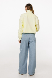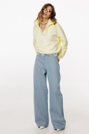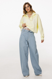 Брюки выполнены из плотного джинса. Брюки прямого силуэта, на притачном поясе, длиной в пол. На передних частях обработаны фигурные боковые карманы и застёжка на металлическую молнию и пуговицу. На задних частях обработаны кокетки и накладные карманы. Пояс выполнен с декоративным отворотом на лицо. По поясу обработаны 5 шлевок и декоративная петля. Длина брюк: р.44-48 - 114 см, р. 50-54 - 115 см БРЮКИ м. 3045 44 46 48 50 52 54 Длина сбоку с поясом 114 114 114 115 115 115 Объем по талии 76 80 84 88 82 96 Объем по бедрам 104 108 112 116 120 124 Ширина пояса 4,5 4,5 4,5 4,5 4,5 4,5