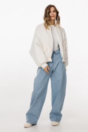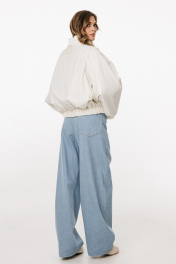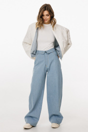 Брюки выполнены из плотного джинса. Брюки прямого силуэта, на притачном поясе, длиной в пол. На передних частях обработаны фигурные боковые карманы и застёжка на металлическую молнию и пуговицу. На задних частях обработаны кокетки и накладные карманы. Пояс выполнен с декоративным отворотом на лицо. По поясу обработаны 5 шлевок и декоративная петля. Длина брюк: р.44-48 - 114 см, р. 50-54 - 115 см БРЮКИ м. 3045 44 46 48 50 52 54 Длина сбоку с поясом 114 114 114 115 115 115 Объем по талии 76 80 84 88 82 96 Объем по бедрам 104 108 112 116 120 124 Ширина пояса 4,5 4,5 4,5 4,5 4,5 4,5 _