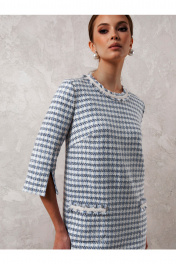 Маленькое элегантное платье с втачным покроем рукава. .По переду карманы , которые придает платью нотку непринужденности, не нарушая его элегантности. Потайная молния по спинке гарантирует легкое и удобное надевание.