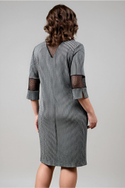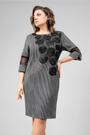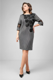 Центральный акцент — изысканная аппликация в виде розочки, которая придает платью нежности и праздничного настроения. А для эффектного шага и легкой интриги по переду слева расположена шлица на элегантных петлях и пуговицах, позволяющая регулировать глубину разреза.. По Длина платья в 50-52-54 размерах 100 см, в 56-58-60 размерах 102 см, длина рукава 44 см.