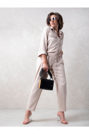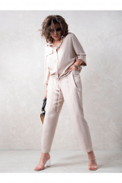 Жакет женский, полуприлегающего силуэта. Воротник и лацкан пиджачного типа. Двухбортная застежка на петли и пуговицы. По переду резьефы идущие он плечегого шва и к низу жакета. Втачной рукав. Жакет выполнен на подкладке.