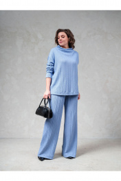 Компллект женский, состоящий из джемпера прямого силуэта. Воротник "хамутик" .Рубашечный рукав, зауженный к низу. Брюки на резинке, немного расклешенные к низу.