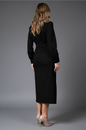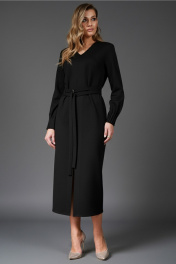 Платье прямого силуэта длины миди – идеальное воплощение современной элегантности. Изящный V-образный вырез деликатно подчеркивает линию шеи и ключиц, позволяя вам демонстрировать любимые украшения или просто наслаждаться его минималистичным шиком. Элегантный разрез по низу спереди добавляет динамики при каждом шаге. Акцентный пояс выгодно подчеркивает талию, создавая женственный силуэт, а изысканные защипы по манжетам добавляют утонченности и завершенности образу.