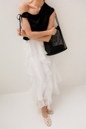 Юбка с воланами ERTANNO — это воплощение лёгкости, движения и женственной грации. Модель, созданная для тех моментов, когда хочется чувствовать себя особенно красиво — будто каждый шаг превращается в мягкое летнее движение ткани. Юбка конической формы плавно расширяется к низу, создавая эффект воздушного силуэта и красивой динамики при ходьбе. Длина в пол делает образ элегантным и немного романтичным, а лёгкое движение ткани придаёт походке особую плавность. Полотнище юбки состоит из шести аккуратных клиньев, благодаря чему модель идеально садится по талии и мягко раскрывается книзу. Швы соединения клиньев украшены изящными воланами, которые добавляют образу объём, фактуру и лёгкое ощущение парящей ткани. Внутренняя подкладка обеспечивает комфорт и идеальную посадку. Тонкий прямой пояс шириной 2 см аккуратно подчёркивает линию талии и сохраняет лёгкость силуэта. Потайная молния, аккуратно спрятанная в шве клиньев, чтобы ничего не нарушало чистоту линий изделия. Эта юбка создана для летних прогулок, особенных встреч и моментов, когда хочется чувствовать лёгкость и свободу. Она прекрасно сочетается как с романтичными блузами, так и с лаконичными топами, жакетами, позволяя создавать стильные и женственные образы.На модели размер 44 Параметры модели: рост-175см, 82-67-91