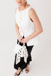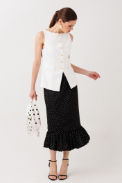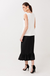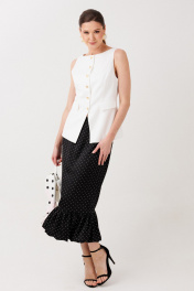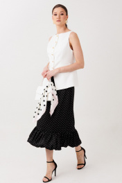 Купить юбку в горошек ERTANNO — элегантная модель прямого силуэта длиной ниже середины икры. Юбка выполнена на подкладке, дополнена притачной оборкой и потайной молнией на спинке. Стильная женская юбка миди идеально подходит для повседневных и классических образов. Элегантная черная юбка в изящный белый горошек — воплощение женственной классики с лёгким французским настроением. Контрастный принт выглядит утончённо и благородно, а мягкая оборка придаёт силуэту движение и особую воздушность. Юбка прямого силуэта, длиной ниже середины икры, деликатно подчеркивает фигуру и создаёт изящный, вытянутый силуэт. Лёгкая сборка оборки добавляет романтики и делает каждое движение плавным и выразительным. Модель на подкладке с аккуратной потайной молнией на спинке обеспечивает идеальную посадку и комфорт. Эта юбка легко становится основой стильных образов — от утончённого офисного до элегантного вечернего. На модели размер 44 Параметры модели: рост-175 см, 82-67-91