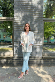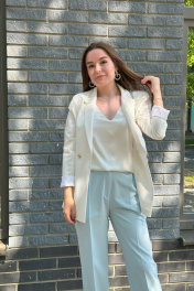 Эти брюки станут прекрасным выбором для тех, кто ценит стиль и комфорт. Стрелка придает брюкам элегантный вид, а карманы обеспечивают удобство в повседневном использовании. Брюки выполнены из качественных материалов - вискозы, полиэстера и спандекса, что обеспечивает комфорт при ношении и позволяет коже дышать. Сзади по талии на резинке, что позволяет брюкам прекрасно облегать фигуру, подчеркивая ее достоинства. Эти брюки подойдут для любых повседневных ситуаций, будь то офисный дресс-код или встреча с друзьями. Длина-105см.Обмеры готового изделия:(42)от-58см,об-92см;(44)от-62см,об-98см;(48)от-70,об-104см.Параметры модели: рост-170 см.