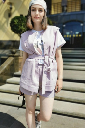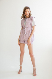 Фиолетовый хлопковый костюм шорты с жилетом на пуговицах ERTANNO 2120-лила лиловый