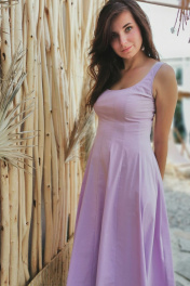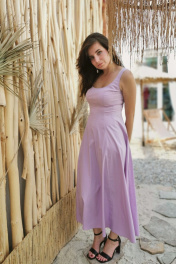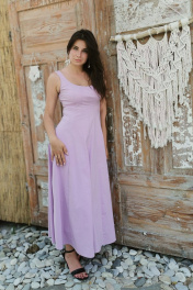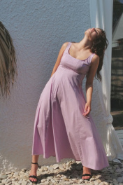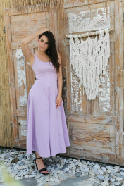 Платье миди от ERTANNO выполнено в элегантном лиловом оттенке из высококачественной хлопковой ткани. Эта изящная модель идеально подчёркивает фигуру благодаря приталенному силуэту и коническому расширению к низу. Длина платья достигает щиколоток, а его отсутствие рукавов и подкладки обеспечивает легкость и комфорт. Застежка на потайную молнию в среднем шве спинки добавляет практичности. Платье станет отличным выбором для вечерних выходов и торжественных мероприятий, особенно в сочетании с подходящими аксессуарами. Длина-132см. Параметры готового изделия: (42)ОГ-85см,ОТ-69см; (44р)ОГ-89см ,ОТ-73см ; (46р)ОГ-93см ,ОТ-78см ; (48)ОГ-97см ,ОТ-82см. Подкладка: нет Параметры модели: рост 173 см, ог-97, от-78, об-97 На модели размер 46