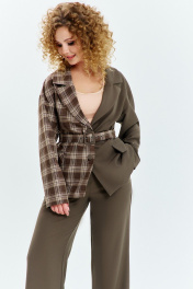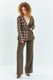 Брюки, жакет Euromoda 635 хаки+клетка