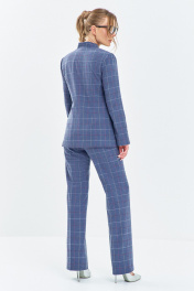 - ОписаниеКостюм женский 2хпредметный состоит из жакета и брюк, Жакет полуприлегающего силуэта выполнен из костюмной ткани, по полочке жакета расположена накладная деталь с функциональным прорезным карманом "рамка", и декоративные фальш-карманы в области груди. Рукав втачной длинный. горловина обработана плоско лежащим воротником -стойкой. Застежка жакета - потайная (супатная) на петли-пуговицы. Жакет на полной подкладке.Брюки классического кроя, прямые от бедра, с высокой посадкой. Пояс в брюках втачной с резинкой, застежка молния на гульфике и петля- пуговица