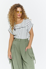 Блуза, брюки Euromoda 689 хаки/полоска