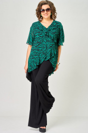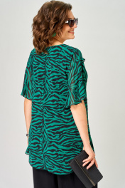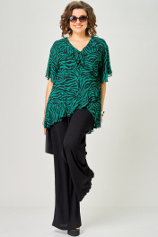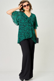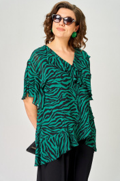 Блузка женская красивая стильная шикарная нарядная повседневная полуприлегающего силуэта расширенная к низу за счет воланов. На подкладке. Выполнена из легкого красивого шифона с трендовым принтом. Вырез горловины V-образный с воланами на обтаке, что скрывает все недостатки фигуры и делает образ легким и элегантным. Рукав втачной в виде волана, плечо спущенное. Низ блузы ассиметричный за счет воланов. Декором служит принт самой ткани и шифоны