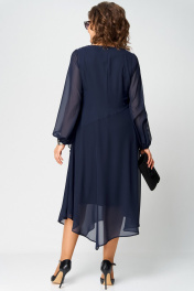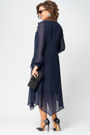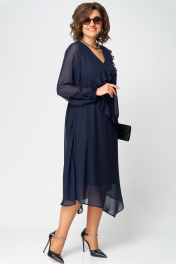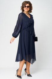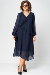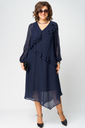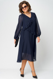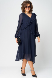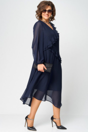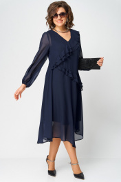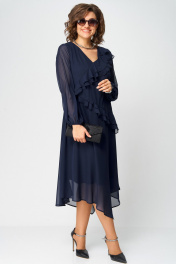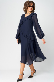 Платье женское нарядное полуприлегающего силуэта на трикотажной подкладке расширенное к низу выполнено из шикарного шифона. Вырез горловины V-образный, рукав втачной по низу собран на резинку. По полочке нагрудные вытачки и фигурные подрезы с двойными воланами. Низ платья фигурный. Декоро платья служат воланы и дизайн самой ткани.