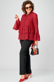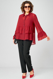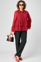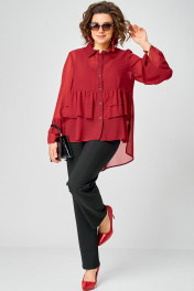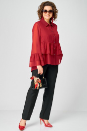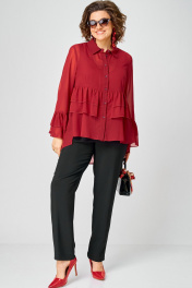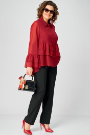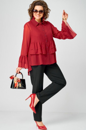 Блуза женская шикарная нарядно - повседневнаая полуприлегающего силуэта на подклдке, выполнена из красивого шифона с принтом. Вырез горловины воротник на стойке рубашечного типа, рукав втачной по низу с притачными воланми. Застежка доверху на обметанные петли и пуговицы, низ блузы фигурный (по спинке длиннее). По переду блузы притачные воланы, в боковых швах обработаны разрезы. Декором блузы служит принт амой ткани и отделочные элементы в виде воланов.