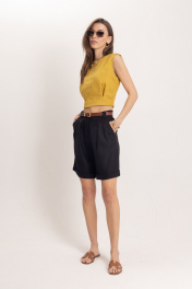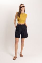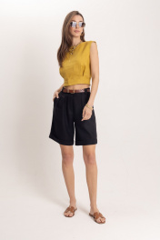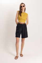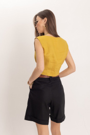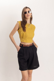 Комплект топ и шорты из премиального льна Стильный женский топ, выполнен из 100% льна, в богатом горчичном цвете, отлично подчеркнёт летний загар. Топ идеально сочетается с элегантными брюками для офисной и вечерней моды. Комплект гармонично смотрится с аксессуарами из золота или жемчуга, такой комплект может быть любимым элементом вашего гардероба. Прекрасный, нежнейший лен черного цвета - идеальный концепт для летнего гардероба. Удобные и комфортные даже в самый жаркий день! Удобная длина позволяет носить их в офис, соблюдая дресс-код. Верхний срез шорт обработан притачным поясом с отрезными шлёвками, мягкие складки отлично скроют недостатки фигуры, сделают силуэт стройным, имеется пуговица из материала «кокос». Передние части шорт с отрезными боковыми карманами. Премиальный качественный лен не просвечивает и не портится от стирок. Комплект выполнен изо льна премиум-качества в уже полюбившемся стиле “old money”. Данный комплект женского гардероба говорит о великолепном вкусе его обладательницы, а оригинальный дизайн и расцветка сделают ваш образ ещё более женственным и сексуальным.