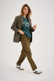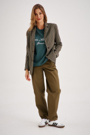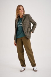 Универсальный комплект из жакета, свитшота и джинсов бананов идеально создает как повседневный, так и вечерний образ. Элегантный однобортный приталенный клетчатый жакет в английском стиле "Old money" на основе не мнущейся поливискозы с карманами-клапанами. Толстовка выполнена из плотной трикотажной ткани, без застежек и карманов, свободного покроя. Трендовый глубокий зелёный цвет и надпись классического стиля делают данный свитшот стильным элементом гардероба. Практичные и стильные джинсы бананы, имеют высокую посадку, тем самым подчеркивая талию и скрывают недостатки в области живота. Брюки выполнены из 95% натурального хлопка, что обеспечивает комфорт и приятное ощущение при ношении. Свободный крой по всему объему бедер, слегка зауженные книзу брючины. Длину брюк можно подвернуть и скорректировать по своему усмотрению.