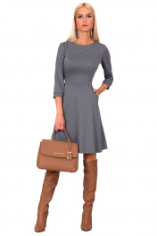 Классическое расклешенное платье из трикотажа с карманами F de F 2314 серый
