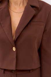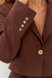 Укороченный жакет, выпонен в ткани из поливискозы - стильный, эффектный и оригинальный . Благодаря безупречному крою и посадке делает силуэт изящным и женственным. В сочетании с брюками создается идеальный завершенный образ. Длина изделия 42 см