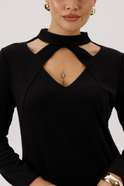Черное платье кокетливым вырезом и рельефом Fantazia Mod 4657