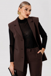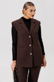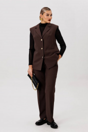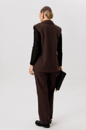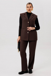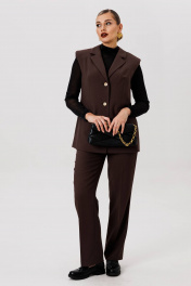 Демисезонный коричневый брючный костюм с жилетом и классическими брюками Fantazia Mod 4978