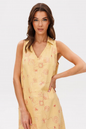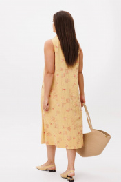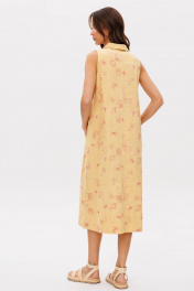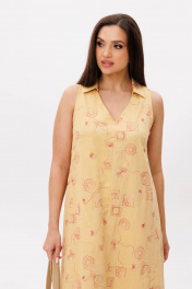 Льняное платье-это про натуральность и комфорт. Оно идеально для жарких дней, выглядит обворожительно и наряду с этим крайне удобно и красиво. Свободный А-силуэт, английская пройма, V-образный вырез, воротник, фигурная линия низа. Полочка с центральным швом, боковыми рельефами с фигурными карманами. Спинка со средним швом, боковыми рельефами. Особую привлекательность модели придает широкая подгибка низа. Длина платья около 117 см.