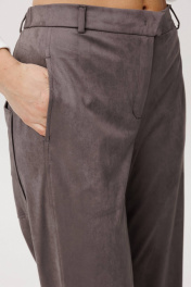 Замша уже несколько сезонов подряд удерживает статус одного из главных трендов. Для тех кто следит за модными новостями, это неудивительно: эта благородная фактура стала основой большинства модных дизайнерских коллекций. Эффектная, она органично вписывается в самые разные образы. Образ, который говорит сам за себя, смелый и дерзкий, и в то же время очень комфортный. Нестандартный жилет с накладными карманами-пеналами с клапаном. Регулирующая кулиса, подчеркивающая талию. Свободный силуэт, центральная застежка на тесьму молнию, фигурная линия низа. Жилет на подкладке. Брюки свободные, прямые на притачном поясе, эластичном в области спинки. Передние половинки с наклонными боковыми карманами. По боку-широкий лампас. Задние половинки брюк с отрезной кокеткой и накладным карманом с вытачкой. Свитшот свободный, с заниженной линией плеча, регулирующей кулисой с фиксаторами по низу изделия, притачными манжетами по низу рукава из отделочного полотна, горловина изделия также выполнена из этого материала. Длина свитшота около 62 см. Длина рукава около 62 см. Длина жилета около 67 см. Длина брюк около 104 см.