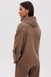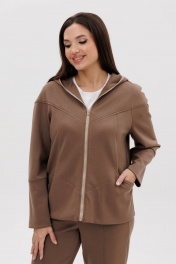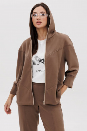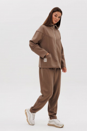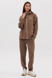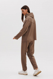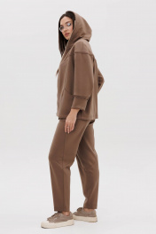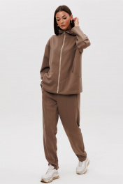 Костюм, где главный акцент-индивидуальность в сочетании со спортивными элементами и экологичными материалами, это модель, где главное удобство и естественность. Он подходит абсолютно всем, не ограничивает в выборе и позволяет чувствовать себя комфортно в любой ситуации. Свободный силуэт, комбинированный покрой, центральная застежка на тесьму-молнию, капюшон рукав-частичный реглан с отрезной широкой манжетой и мягкой складкой в области локтя. Полочка с отрезной кокеткой и фигурным рельефом, переходящим в карман. Спинка с отрезной кокеткой. Брюки свободные, на эластичном поясе в области спинки, с фигурными вертикальными рельефами по центру передних и задних половинок, вытачками в области колена и боковым наклонным карманом. Длина брюк около 100 см. Длина куртки около 70 см. Длина рукава с плечом около 74 см.