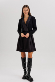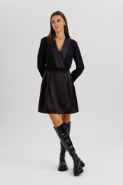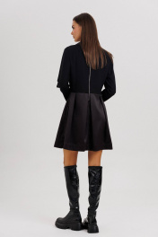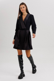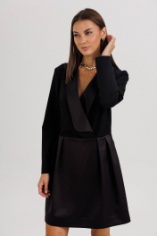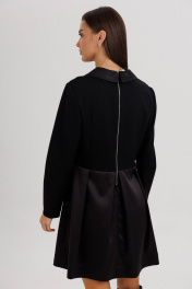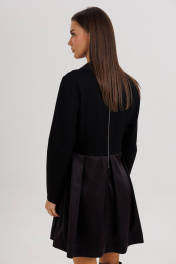 Элегантное платье прилегающего силуэта, созданное для тех, кто ценит стиль, утончённость и безупречное исполнение. Втачной крой гармонично подчеркивает фигуру, а акцентная отделка из атласного полотна придаёт образу изысканный блеск. Лиф платья выполнен с талиевыми и нагрудной вытачкой, обеспечивая идеальную посадку, а юбка из гладкого атласа с мягкими складками создаёт лёгкий объём и женственный силуэт. На спинке — застёжка на отделочную молнию, добавляющая современный штрих. Идеальный вариант для вечернего выхода, торжественного ужина или стильного городского мероприятия.