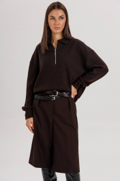 Комплект невероятно комфортный, в самом трендовом цвете сезона. Джемпер из трикотажа. Это одна из базовых вещей осенне-зимнего сезона. Он тёплый, удобный и невероятно комфортный. К тому же, настолько универсален, что его можно стилизовать абсолютно разными способами. Свободный покрой с заниженной линией плеча, рукав рубашечного покроя на отрезной манжете, воротник классический, по центру полочки частичная застёжка-молния. По низу джемпера - отрезной пояс. Бриджи классические, прямые, на отрезном поясе со шлевками, эластичном в области спинки. Передние половинки с талиевыми вытачками и наклонными боковыми карманами. Задние полоаинки с талиевыми вытачками и прорезным карманом с листочкой. Пояс в комплект не входит. Длина бридж около 55 см.