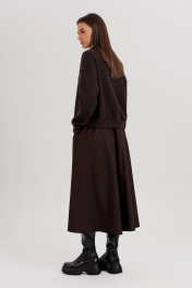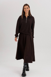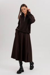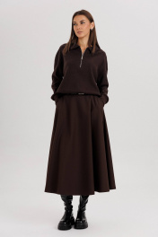 Комплект невероятно комфортный, в самом трендовом цвете сезона. Джемпер из трикотажа. Это одна из базовых вещей осенне-зимнего сезона. Он тёплый, удобный и невероятно комфортный. К тому же, настолько универсален, что его можно стилизовать абсолютно разными способами. Свободный покрой с заниженной линией плеча, рукав рубашечного покроя на отрезной манжете, воротник классический, по центру полочки частичная застёжка-молния. По низу джемпера - отрезной пояс. Юбка коническая, длины миди на притачном поясе, частично эластичном в области спинки. По боковым швам - наклонные карманы, застёжка по центру заднего полотнища на тесьму-молнию и петлю пуговицу. Поя в комплект не вхолит. Длина юбки около 72 см