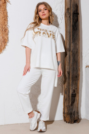 Силуэт: Свободный Тип ткани: трикотаж Вырез горловины: округлый Декоративные элементы: фольгированная печать, декоративные завязки по бокам