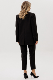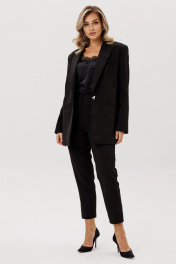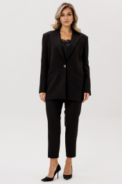 Жакет + брюки Жакет оверсайз, на подкладке, с застежкой на одну пуговицу и функциональными карманами. Брюки средней посадки, слегка зауженные книзу. Пояс частично на резинке.