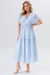 Силуэт: свободный. Вырез горловины:V-образный, на резинке. Длина изделия: от плечевого шва - 125 см Дополнительное описание: платье со спущенной линией плеча. Талия на эластичной тесьме, юбка с воланом на сборке. В боковых швах изделия- карманы.