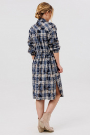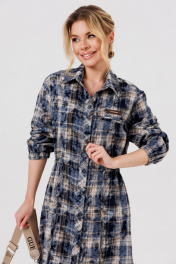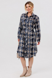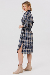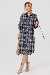 Силуэт: Свободный. Тип ткани: плательная. Вырез горловины: воротник рубашечного типа. Пплатье с центральной застежкй на петли и пуговицы. Рукав втачной,пояс на кулисе, по низу платья разрезы в боковых швах. Низ платья фигурный.