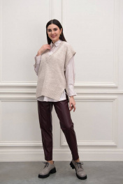 Тренд сезона-вязаный полушерстяной жилет с разрезами по бокам. Превосходный вариант утеплиться снежной зимой и позней осенью.