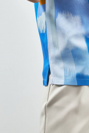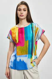 Стильная блузка с принтом полуприлегающего силуэта. Горловина округлой формы и цельнокроенный короткий рукав.Легкая женская блузка с интересным принтом из вискозы добавит Вам женственности и игривости.