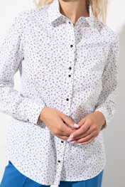 Хлопковая блузка-рубашка сможет дополнить повседневный гардероб в любое время года: осенью, зимой, весной и летом. Легкая блузка с длинными рукавами имеет стояче-отложной воротник, как у рубашки. Модель застегивается спереди на кнопки. На рукавах есть манжеты шириной 6 см , которые застегиваются на 2 кнопки. Благодаря нагрудным и талиевым выточкам модель красиво садится по фигуре.Блузка приятная к телу и на ощупь, хорошо носится, не выгорает на солнце, хорошо сохраняет цвета, легко стирается, быстро сохнет, не требует специального ухода. Рубашка впишется в деловой и молодежный лук любой девушки, подойдет для корпоратива, на работу, для прогулок для торжества. Для высоких и невысоких девушек различного телосложения.
