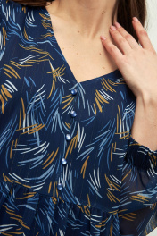 Шифоновое платье на подкладке приталенного кроя, подчеркивающее женственность - отличное решение на каждый день для современной стильной женщины. Такую элегантную модную вещь из струящейся ткани с расклешенной, в меру пышной юбкой можно также надеть на любой праздник: корпоратив, вечеринку по случаю юбилея, свадьбу или на выпускной. Пояс в виде сборки выделит тонкую талию и украсит любую фигуру.Объемные рукава-фонарики длиной 7/8 и меют сборку по низу на резинку 4 см. У платья красивый V- образный вырез горловины дополненный декором в виде пуговиц.Одежда из летящего шифона в таком стиле подходит для летних и осенних прогулок, офисной работы или вечеринки.