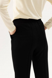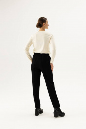Классические брюки со стрелками зауженные книзу.Все детали продуманы для вашего удобства: пояс сзади присборен на резинку, вместо застежки завязки с наконечниками,два удобных наклонных кармана по бокам.Базовые брюки — основа любого гардероба.