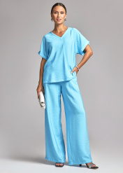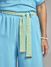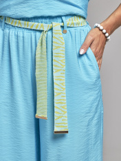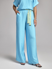 Свободные женские брюки на резинке с боковыми карманами. Данная модель идет на резинке с поясом и пятью шлевками. Вы можете составить элегантный комплект цвета морской волны с блузкой из нашей коллекции 71177.1.21F . Брюки женские палаццо универсальные, они визуально удлиняют ноги, отлично сочетаются с любой обувью, будь то классические лодочки, кроссовки или слипоны. Брюки на резинке и с акцентным поясом станут вашей любимой базовой вещью, которую легко сочетать с универсальными джемперами, стильными блузками, широкими рубашками и легкими топами.