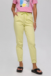 Базовые зауженный книзу брюки- "бананы" из хлопковой ткани на подкройном поясе со шнурком. Лаконичные брюки с наклонными боковыми карманами спереди и прорезными сзади. Кокетка сзади обеспечивает хорошую посадку брюк по фигуре. Брюки цвета лимонного щербета отлично впишутся в Ваш гардероб и позволят собрать множество интересных луков.